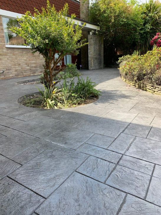 This front garden area was installed using a platinum grey colour and charcoal release agent. The pattern is Royal Ashlar Slate.